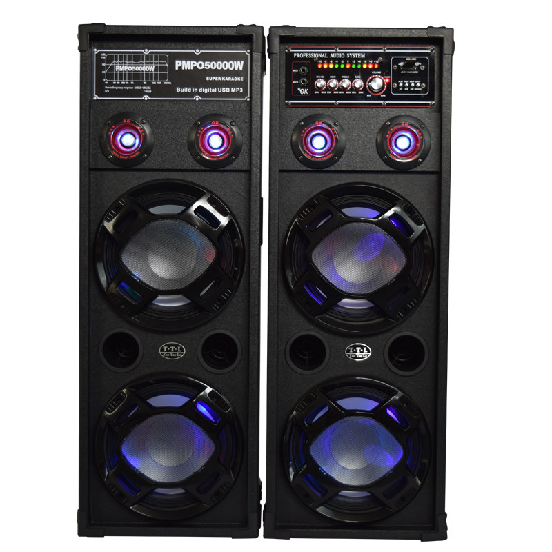 High quality Double 10 inch Card Bluetooth coloured lights to box sound Family own power amplifier vertical mic sound speaker