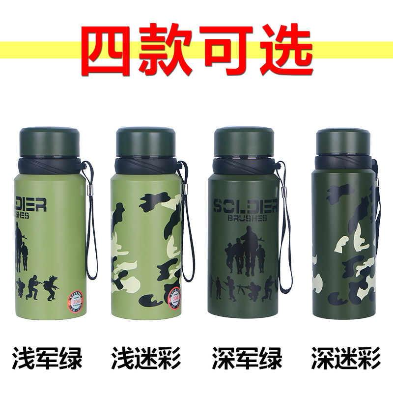 Insulated cup 304 Double-layer vacuum stainless steel water glass green outdoor camouflaged portable kettle men's tea cup-Taobao