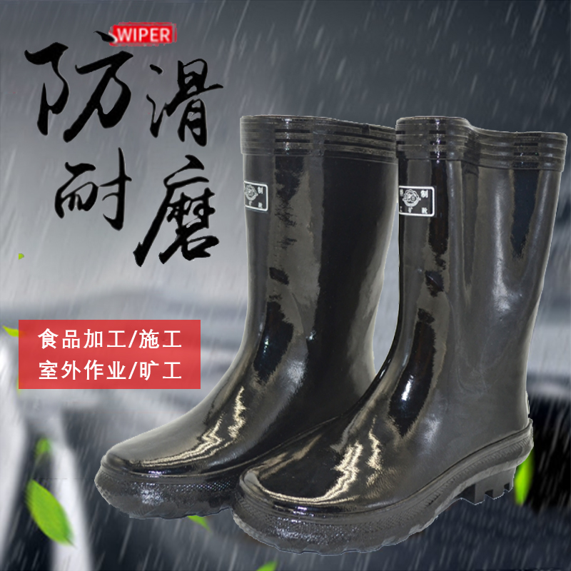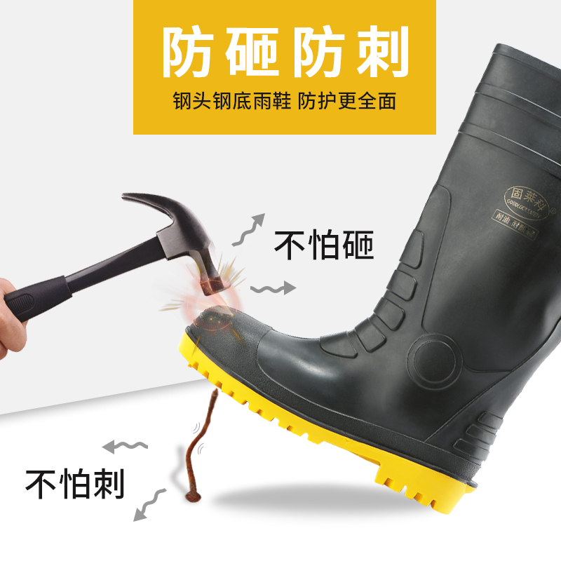 Shanghai Cards Rain Boots Coal Mine Workers Anti-Smashing Ladle Head Bull Gluten Bottom Water Shoes Men High Cylinder Non-slip Labour Shoes Acid Resistant Alkalis