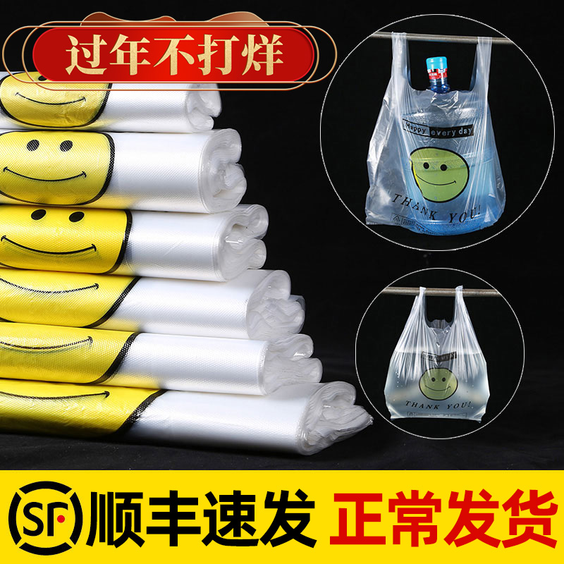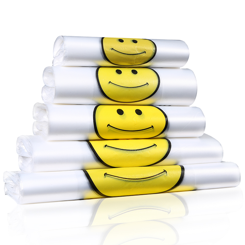 Transparent food bag Plastic bag custom smiley face portable shopping small convenient bag Large delivery packing bag Commercial