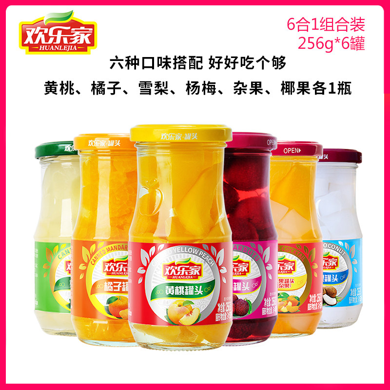 6 in 1 (orange peach carambola coconut offal) 6 cans of yellow peaches 6 cans of oranges 6 cans of sydney pear 6 cans of miscellaneous fruits 6 cans of bayberry 6 cans of coconut fruit 6 cans of hawthorn