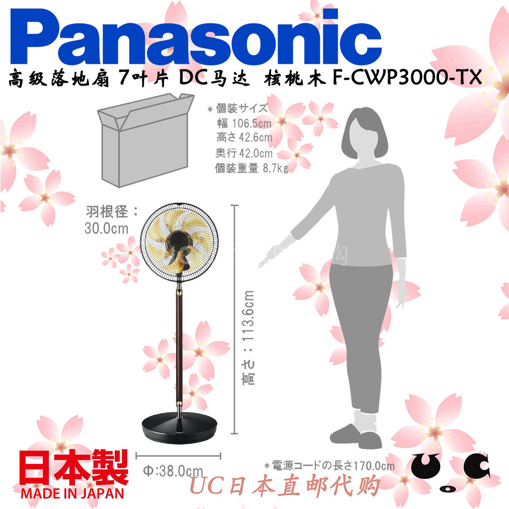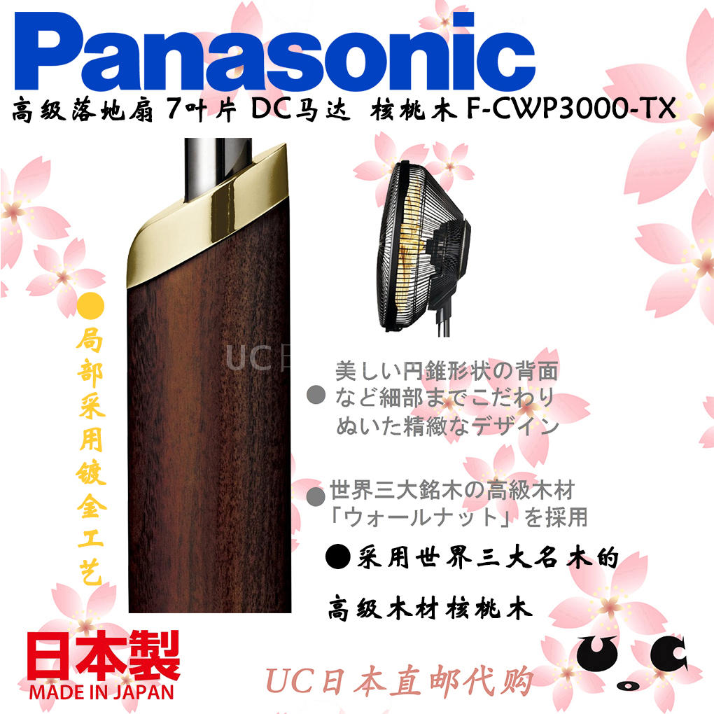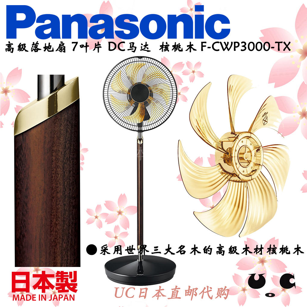 Japan Direct Mail Japanese-made living room bedroom floor-to-ceiling fan gold-plated hand-made walnut F-CWP3000-TX