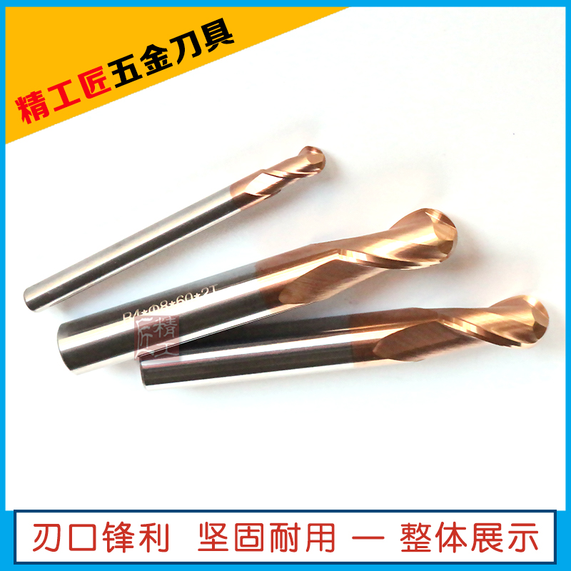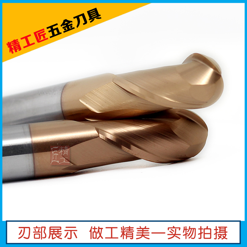 Tungsten steel milling cutter ball head vertical milling cutter 2 blades R gong knife coated straight shank hard alloy plus hard milling cutter R2 3 4 5 6