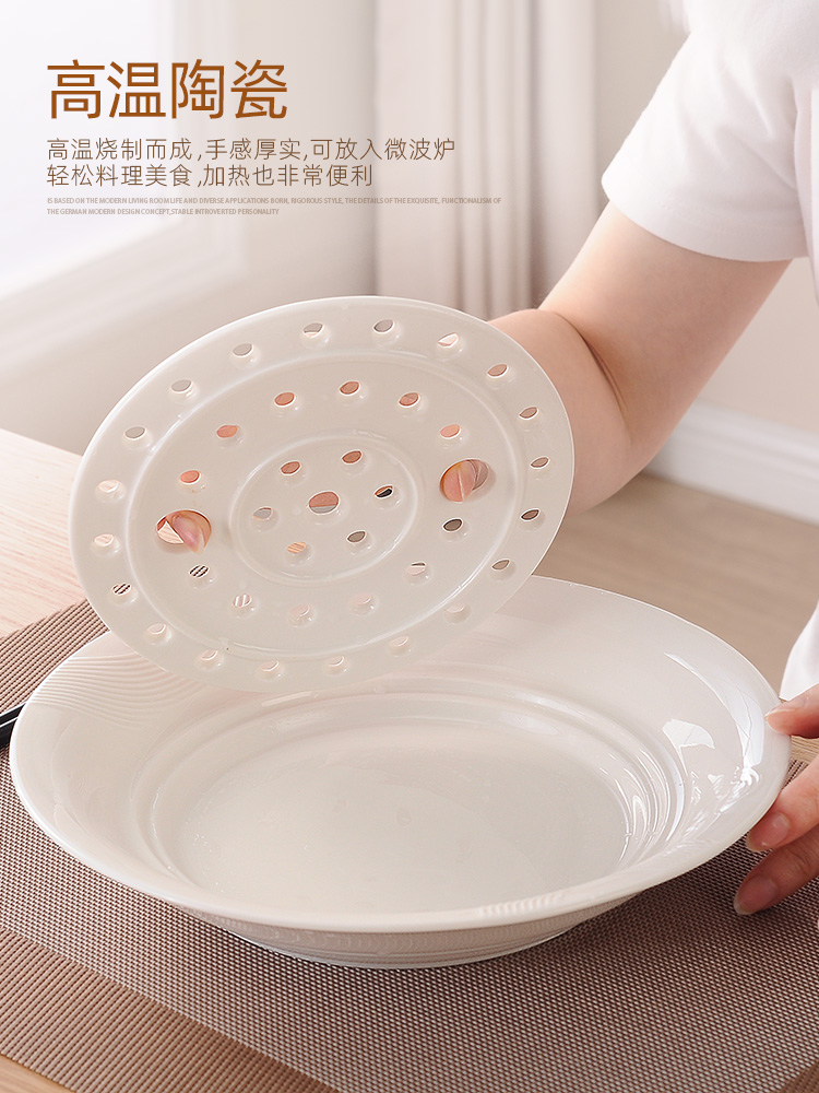 Modern tableware dumpling plate drain double-layer plate water-proof steamed dumpling plate round microwave steaming plate fruit plate