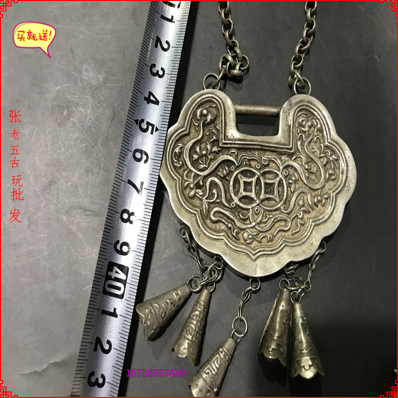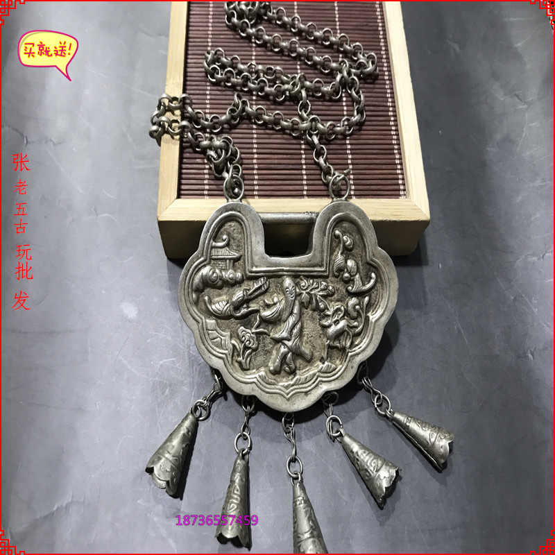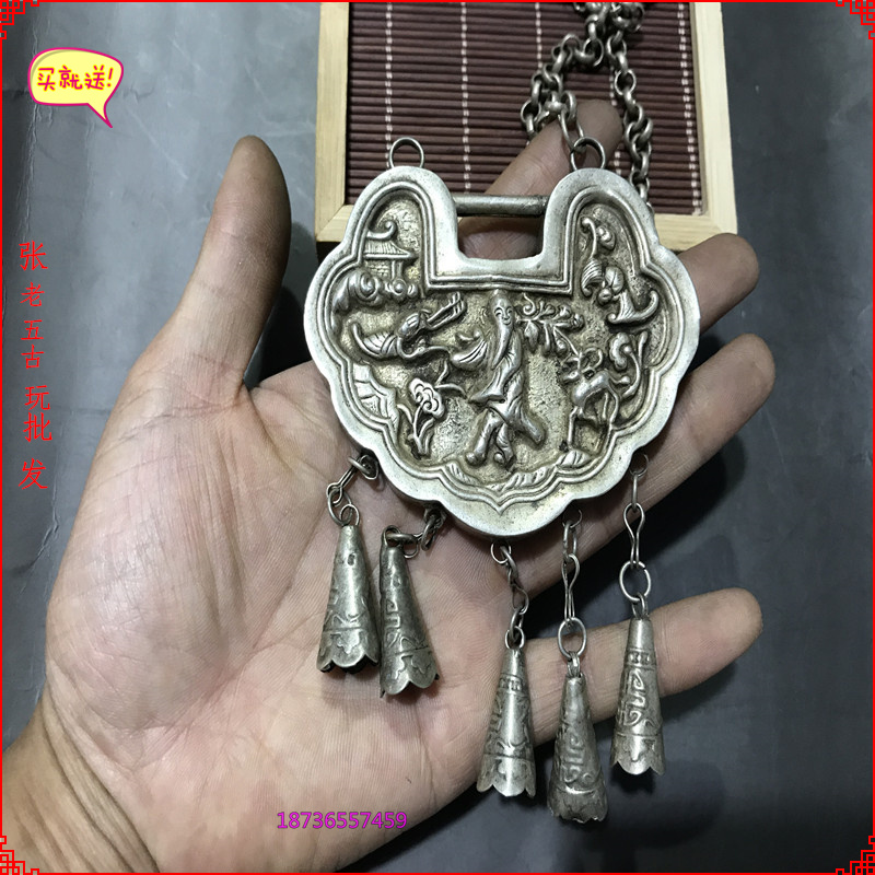 Miao silver Tibetan silver accessories S925 Ping An silver lock sheet baby baby with bell-pan adult necklace pendant pendant silver decoration