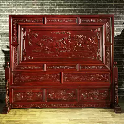 Dongyang wood carving modern Chinese bedroom camphor wood screen partition solid wood living room screen seat screen Simple entrance plug-in screen