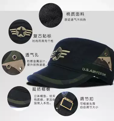 Military hat Men's hat Seasonal sun visor Baseball cap Outdoor quick-drying sunscreen flat top hat Five-star sun visor Military hat