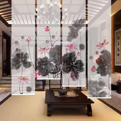 Personality custom classical Chinese painting style modern Chinese screen partition ink lotus shade heat insulation roller curtain