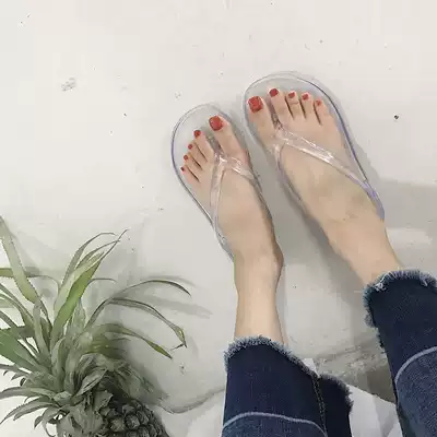 Korean fashion small fresh Jelly Jelly slippers ladies transparent crystal wear-resistant solid color Harajuku Flip-flops beach sandals