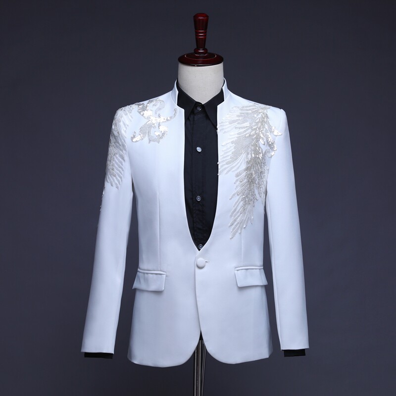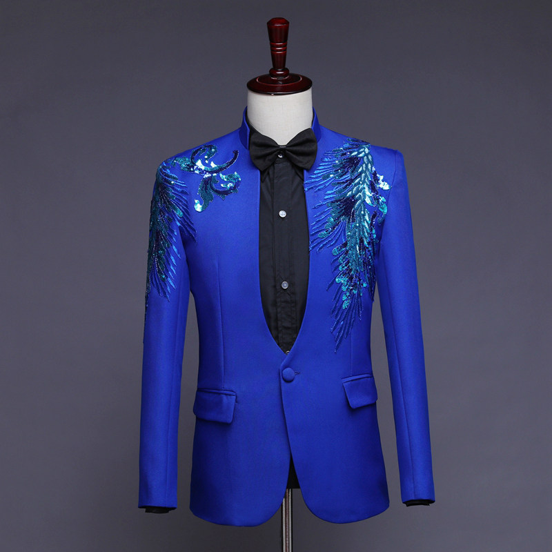 Men's stand-up collar inlaid flower sequined suit host performance costume long-sleeved suit stage singer suit photo dress