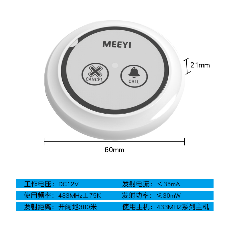 Meiyi wireless two-button caller Y-B12 thin and beautiful dining room theater hotel teahouse wireless call extension