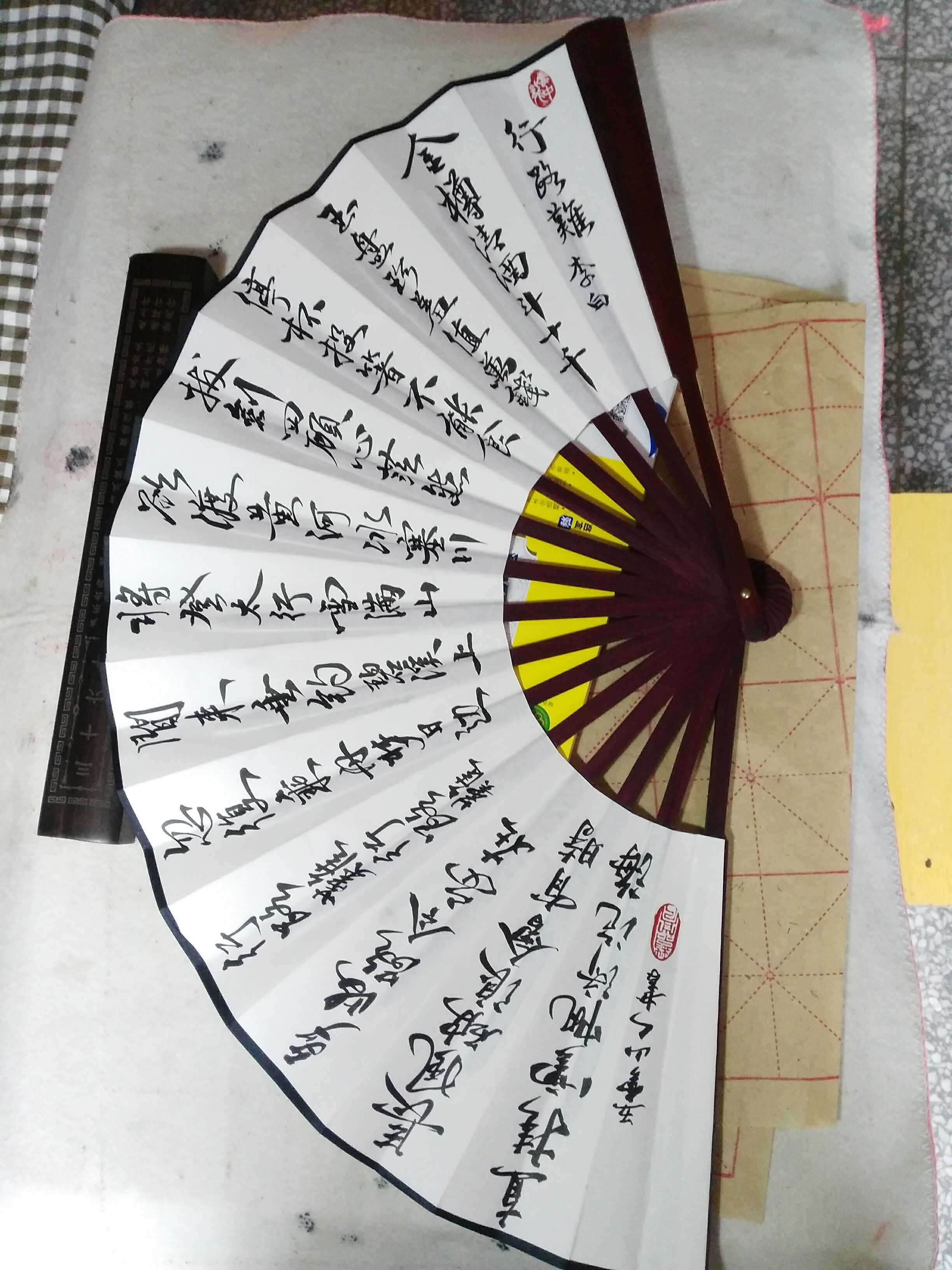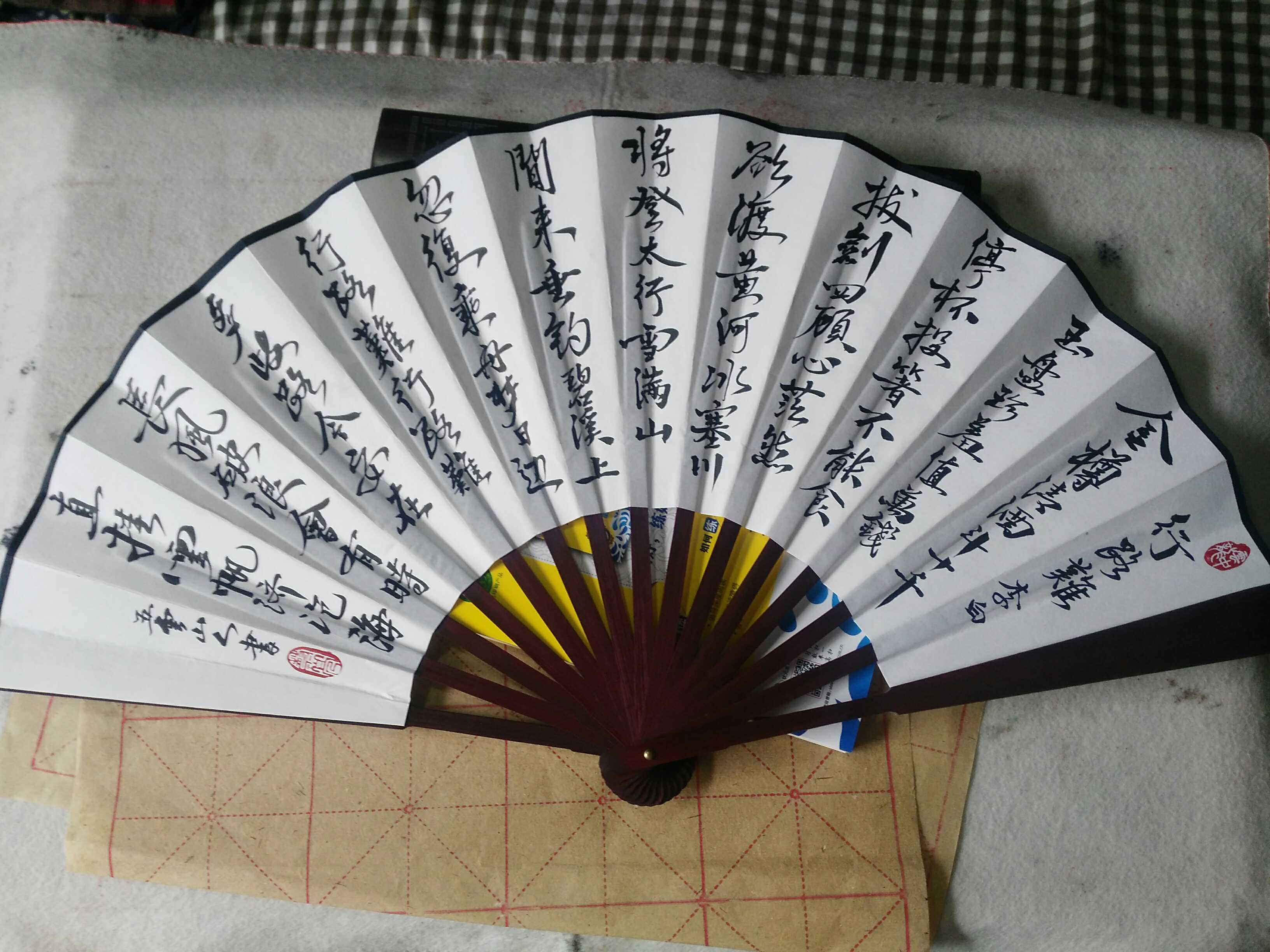 Handwritten inscriptions, ancient poetry folding fans Li Baihang Road difficult to be found in Wuyunshan people's pro-writing calligraphy and calligraphy ten-inch essay fan paper fan