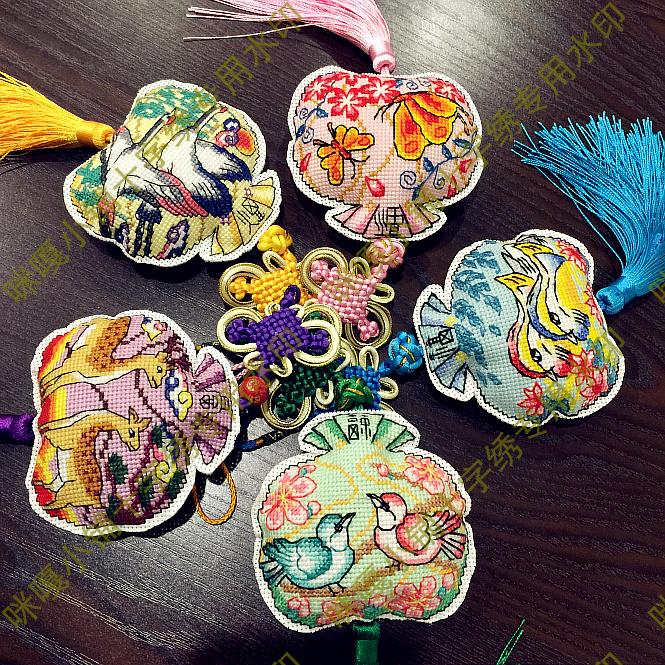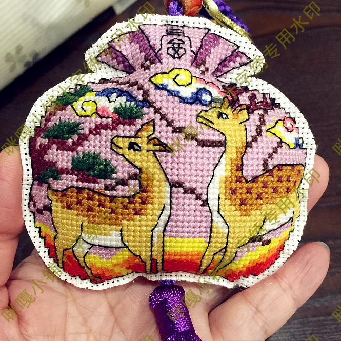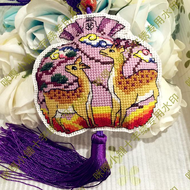 (Thread Embroidered) Mic Cross embroidered car pendant bifacial embroidered bag Enlove double deer