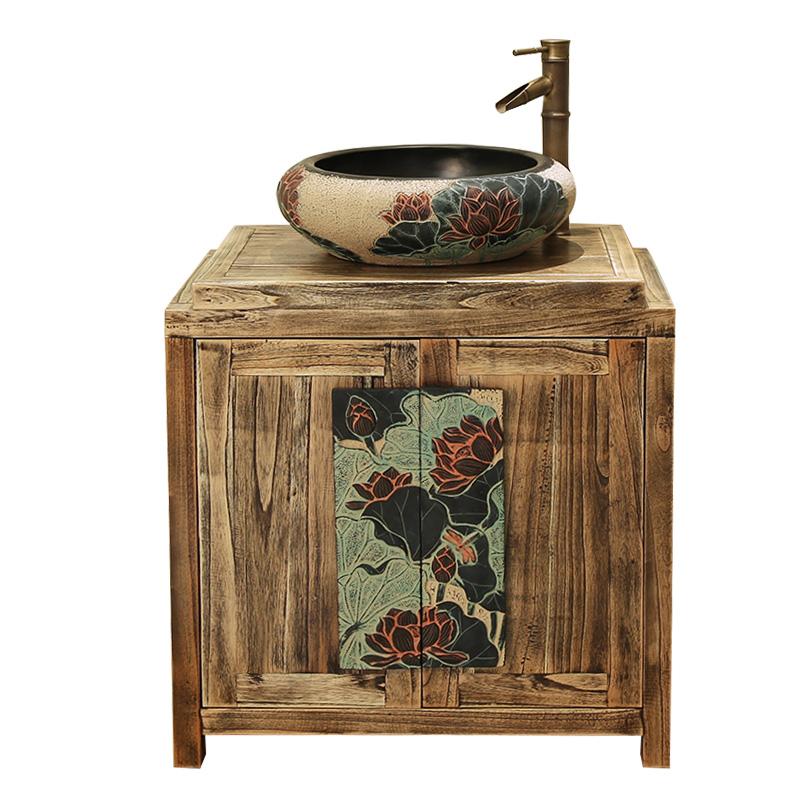 Makeup Room Small Family Style Retro Solid Wood Terrace Basin Cabinet Combined Art Basin Terrace Basin Bathroom Cabinet Balcony Handwashing Table Basin