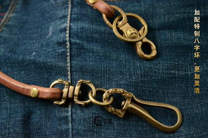 Ami Kachi vintage wallet key chain Pants chain waist chain Male cattle handmade pure brass lightning anti-loss keychain