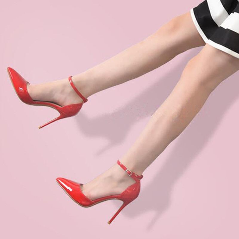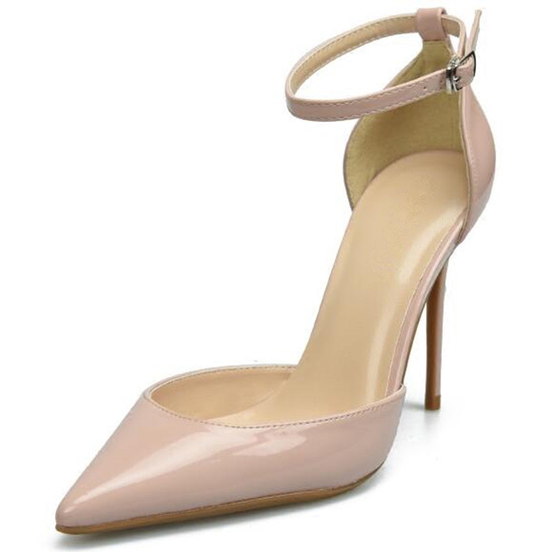 Spring Autumn 100 Hitch Woman Shoes Summer Nude Color Lacquered Leather High Heel Nightclub Pointy Hollow Straight Strap Career Fine Heel Single Shoes