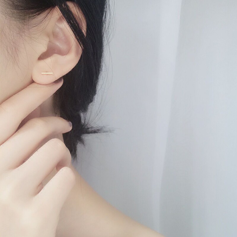 Pure 18K gold ear needles simple temperament one-word earrings gold small ear sticks ins rose gold plain gold ear piercing ear sticks