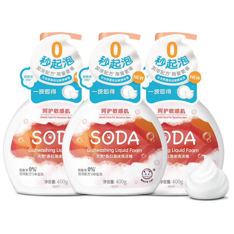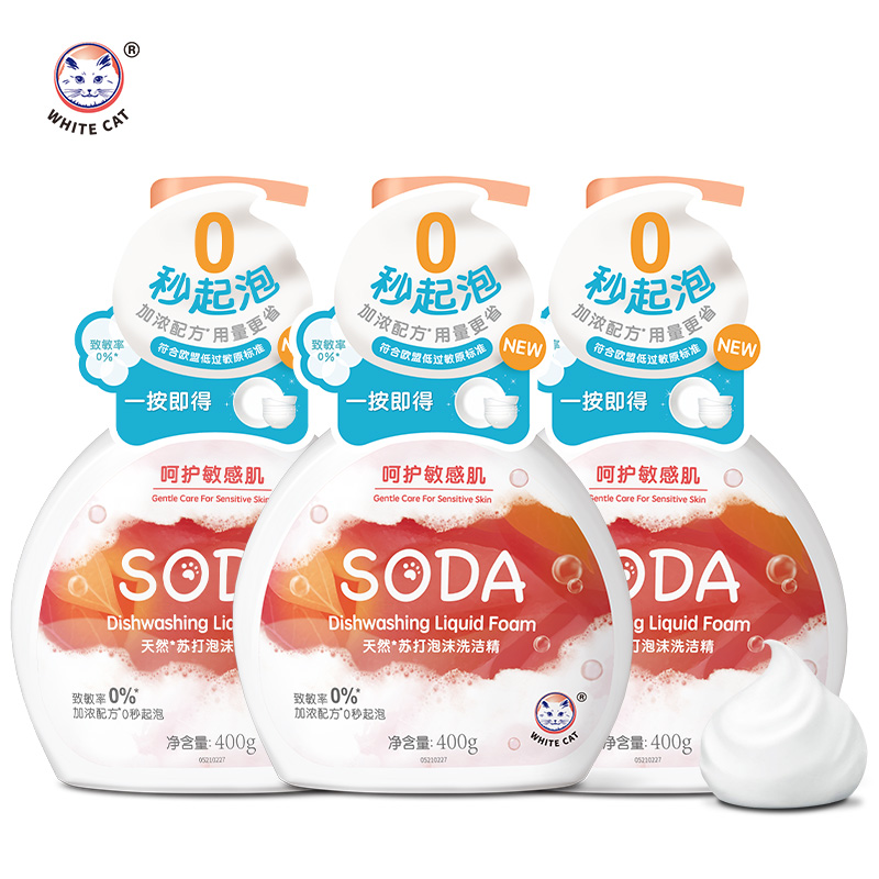 White cat natural soda foam detergent 400g*3 bottles of sterilization, hypoallergenic, natural, non-irritating and mild