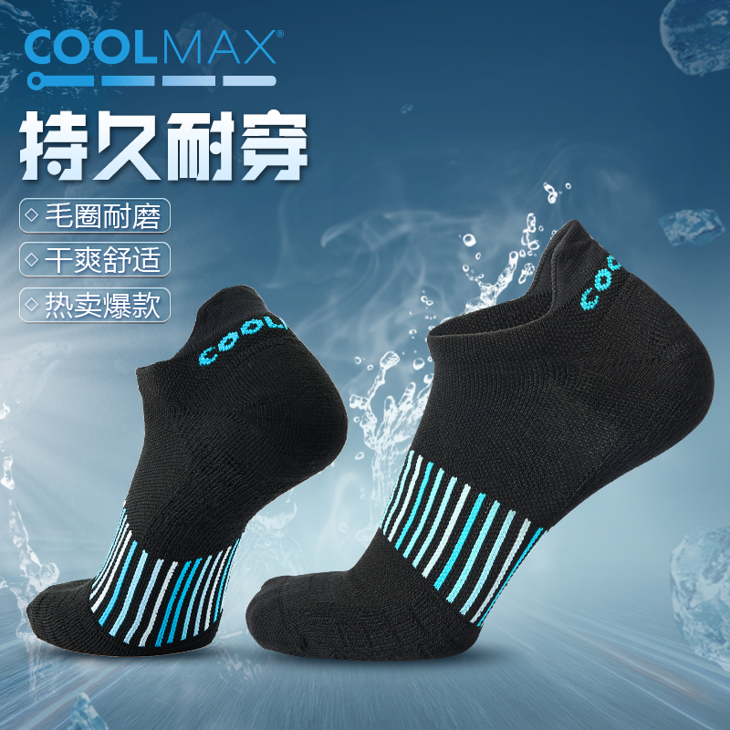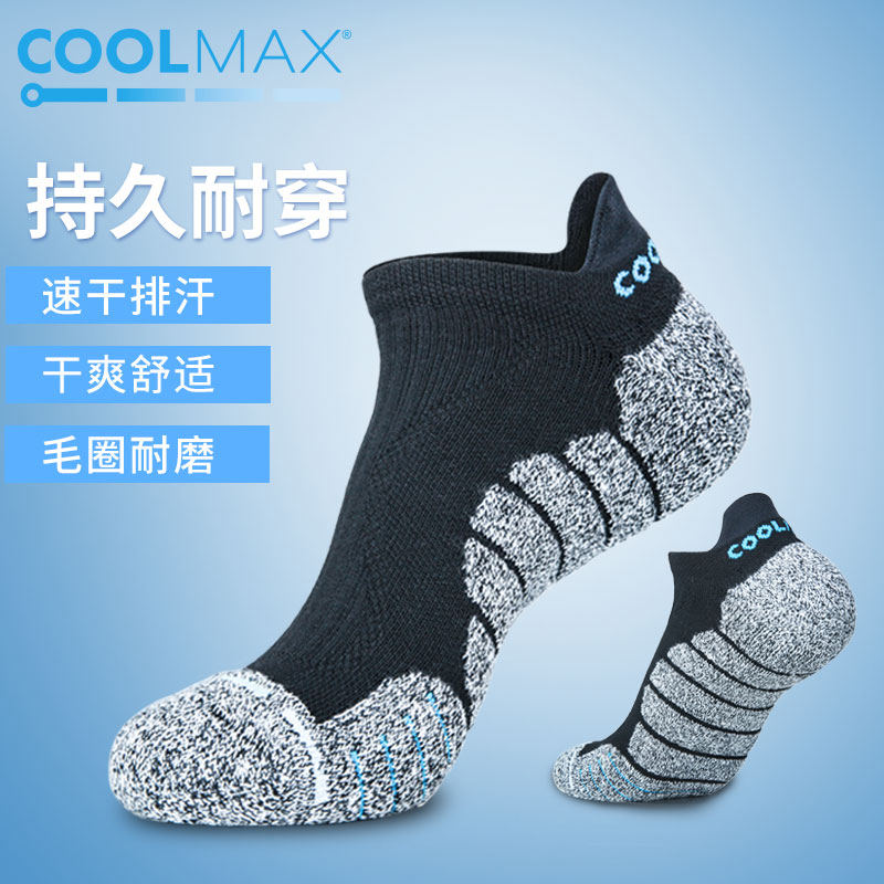 COOLMAX quick-drying outdoor running sports socks towel bottom terry socks low-top invisible socks four seasons comfortable and dry