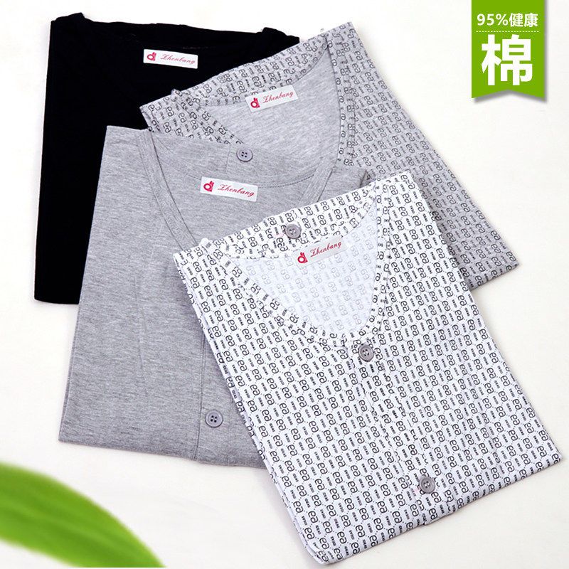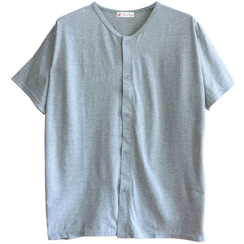 Men's thin sweatshirt plus fattening overweight Summer old pure cotton short sleeves for older people to open up in sweatshirts