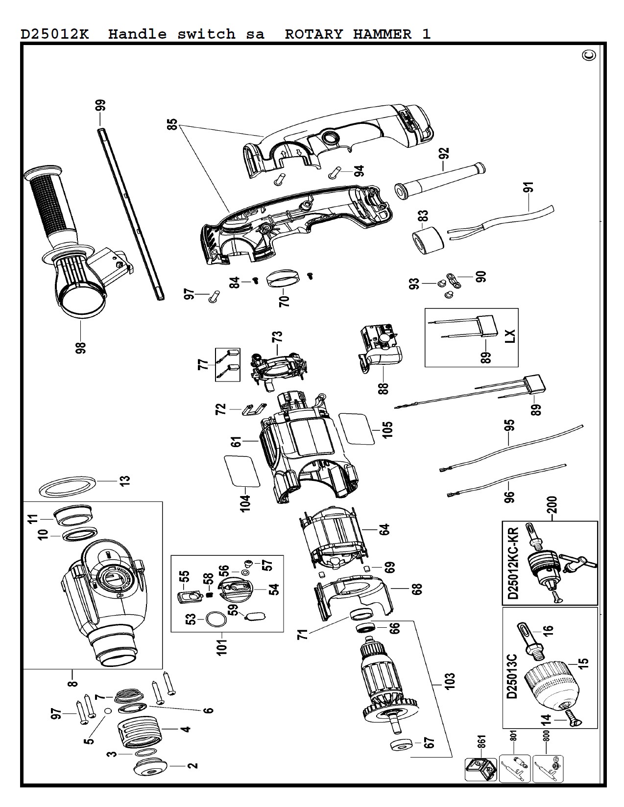 Weiwei (DeWalt) D25012K electric hammer drill with rotor stator carbon brush collet accessories list