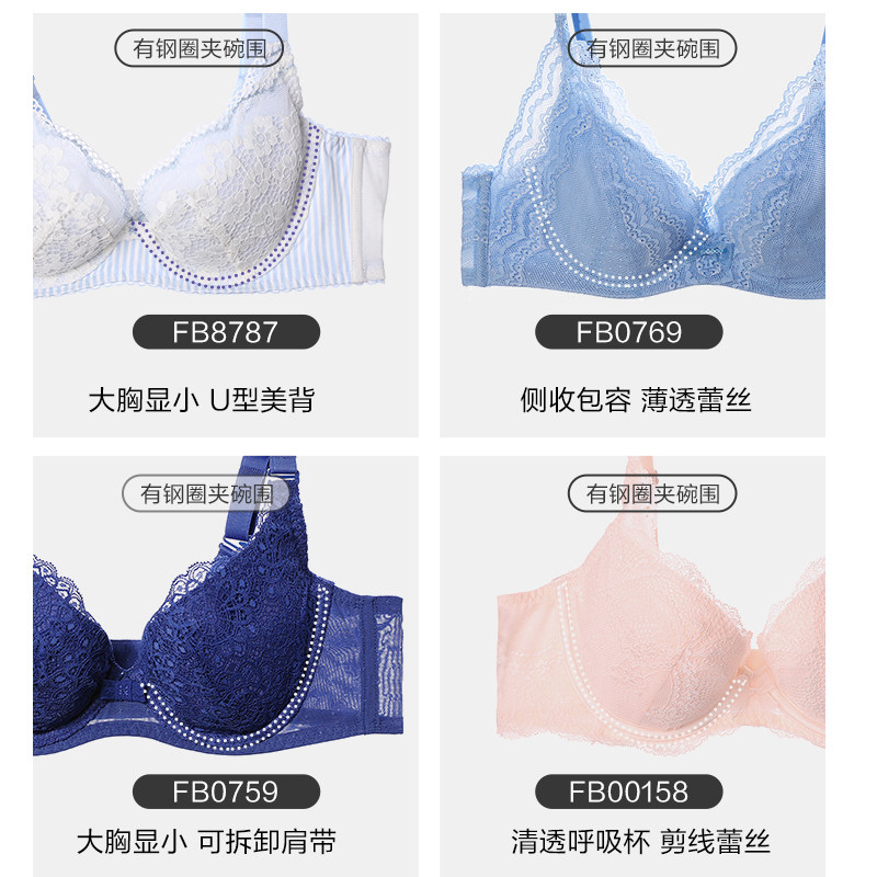 Findith thin lingerie women's clip bowl with steel ring large chest appearance of small sex lace breathable side of breathable breast