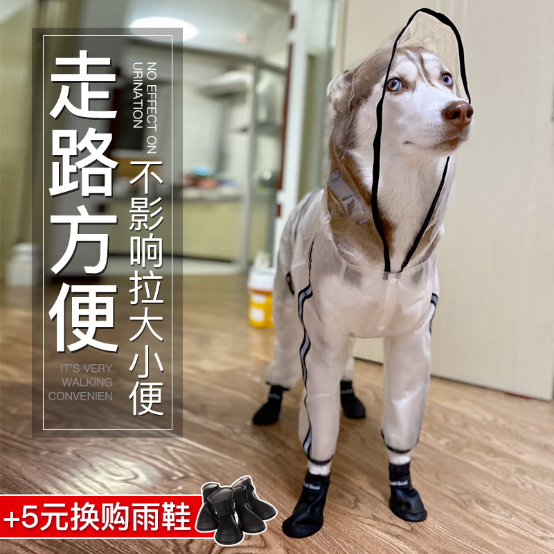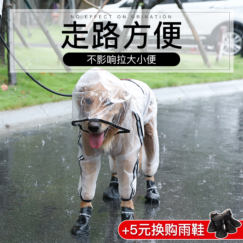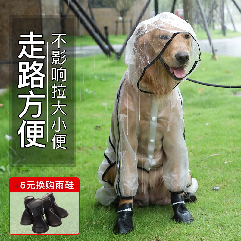 Dog raincoat waterproof all-bag pet large dog Labrador dog umbrella clothes Medium large dog gold wool rain cape