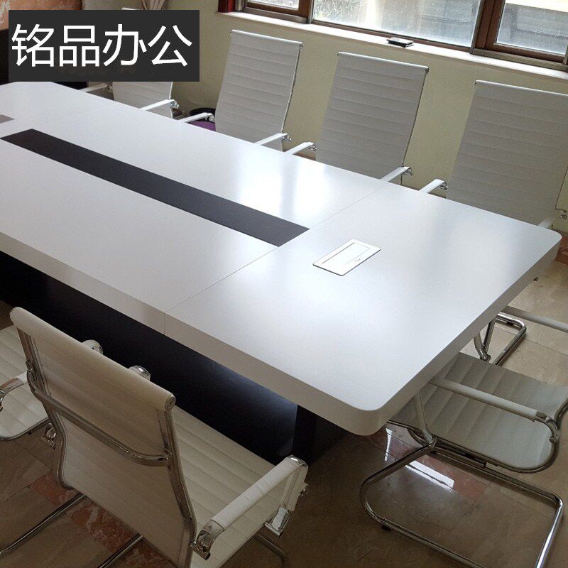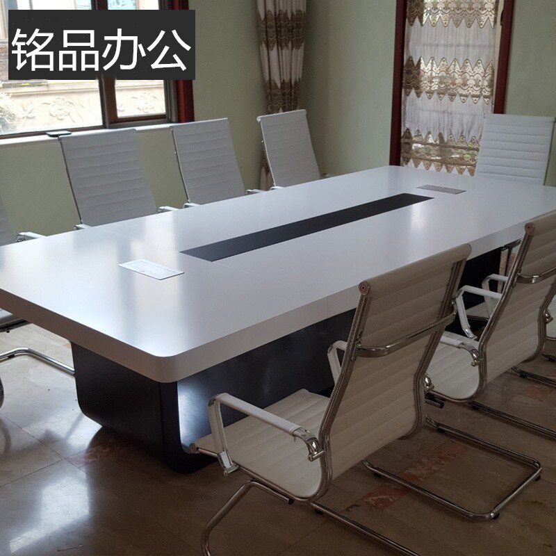 Office furniture conference table long table minimalist modern fashion white baking varnish personality long table negotiating table and chairs combination