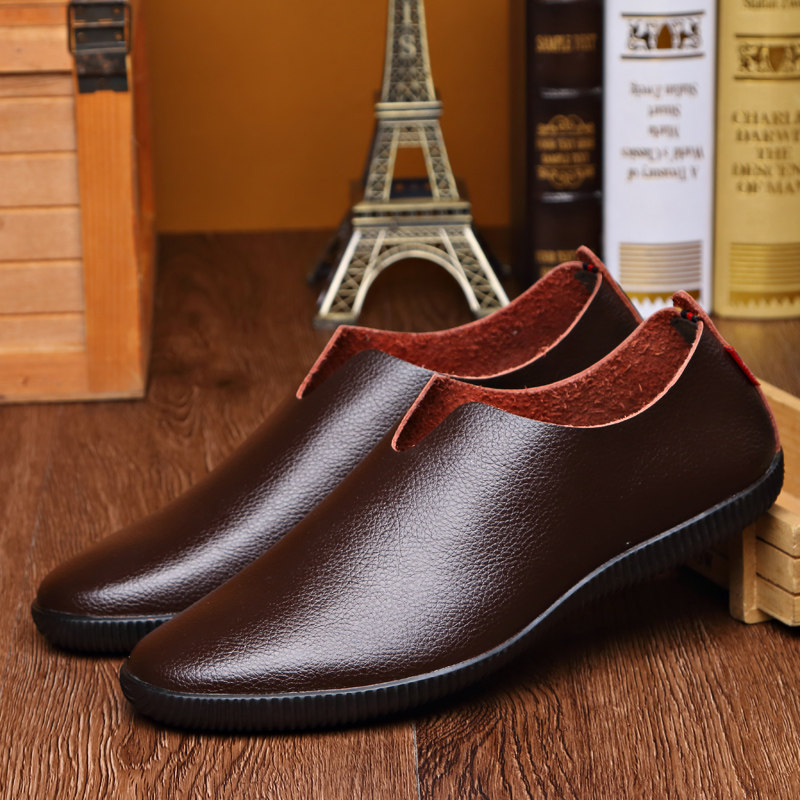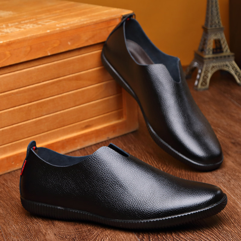 Summer Casual Genuine Leather Men's Shoes Single Layer Soft Cow Leather Breathable Leather Shoes Men Flat Bottom Anti Slip Sloth Man Set Foot Youth Shoes-Taobao