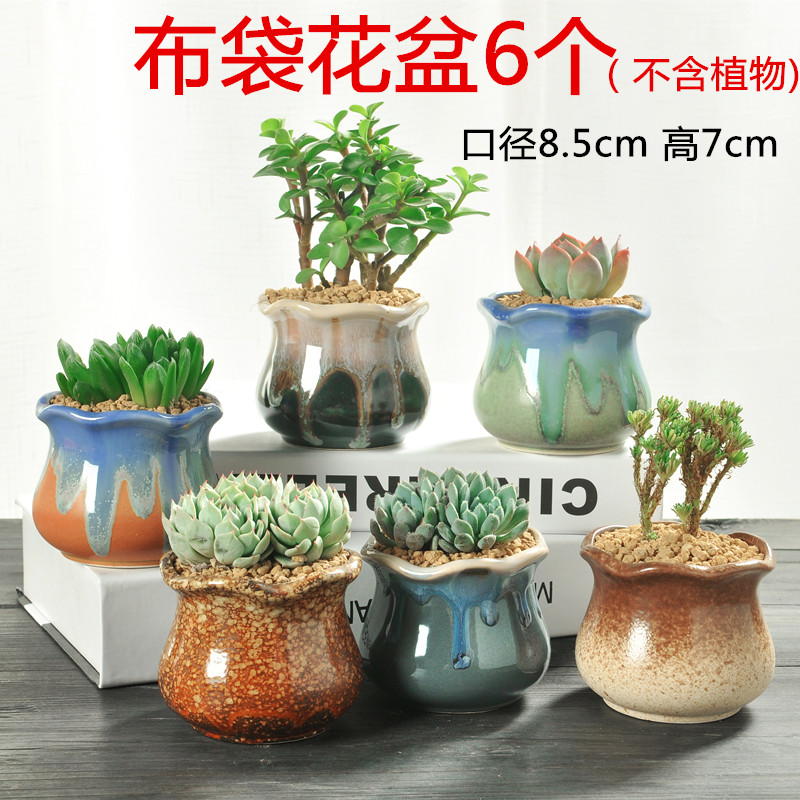 6 cloth bags, 6 peacock glaze flowerpots, 6 small Huba combinations, 6 lace flowing glaze combinations, 6 large lucky pot combinations