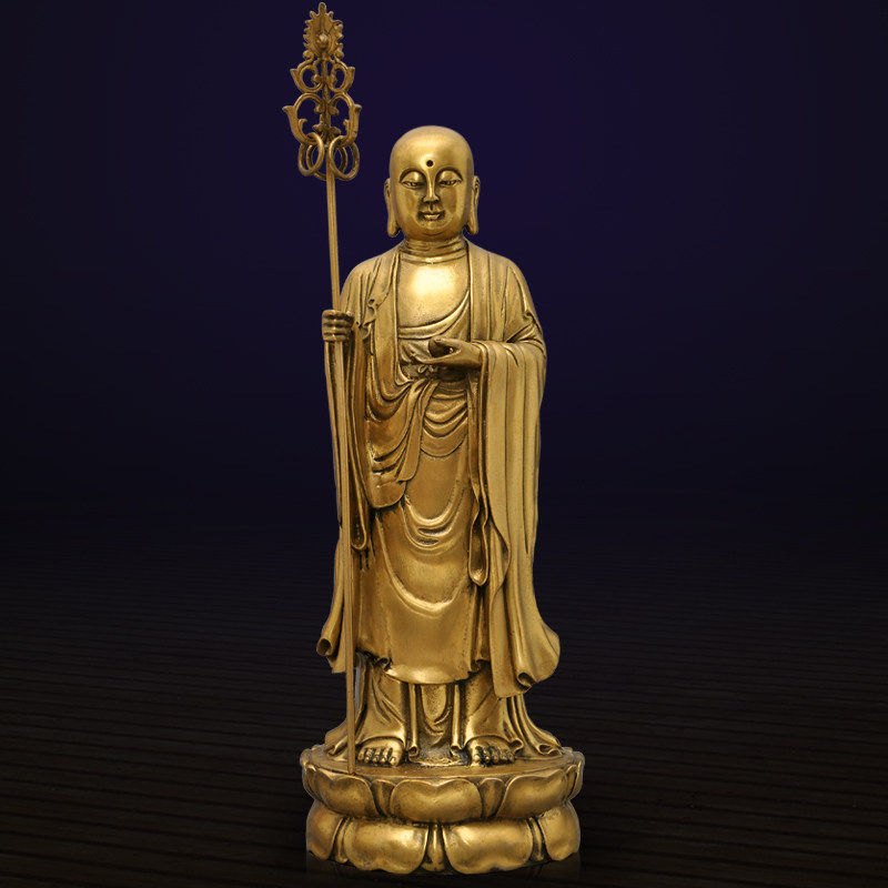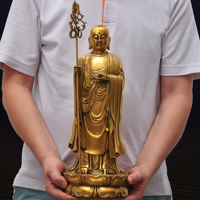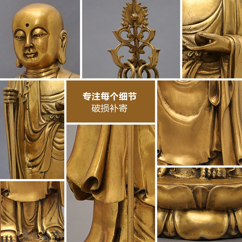 Brass stand ground Tibetan king BodhisattBodhisattBodhisattBodhisattva BIG FOUR BODHISATTVA Residence Living Room Indoor Genguan Placing Craft Gift Hem