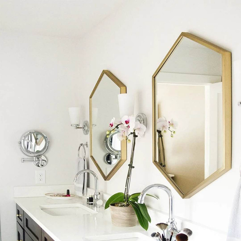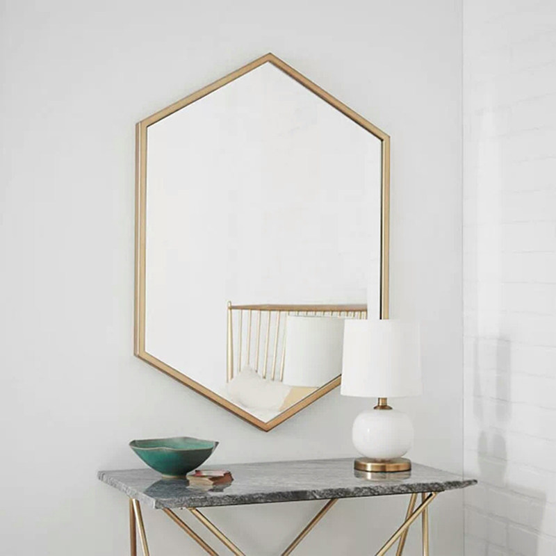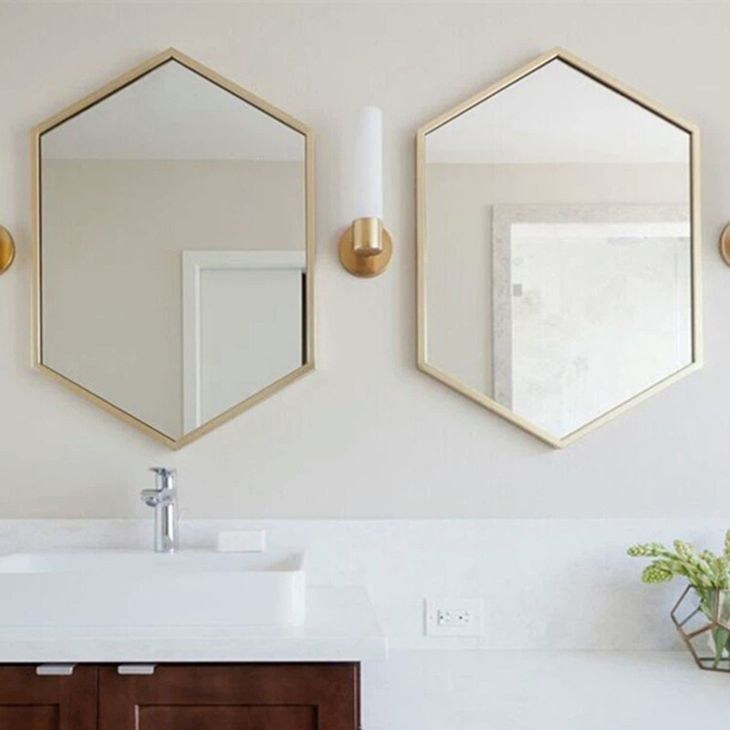 Nordic iron wall hanging mirror diamond mirror bathroom mirror mirror hexagonal mirror decoration mirror hanging mirror
