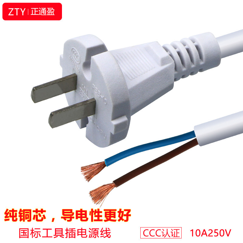 National standard plug line power tools round plug pure copper bare tail 2 core 1 5 square with plug power cable