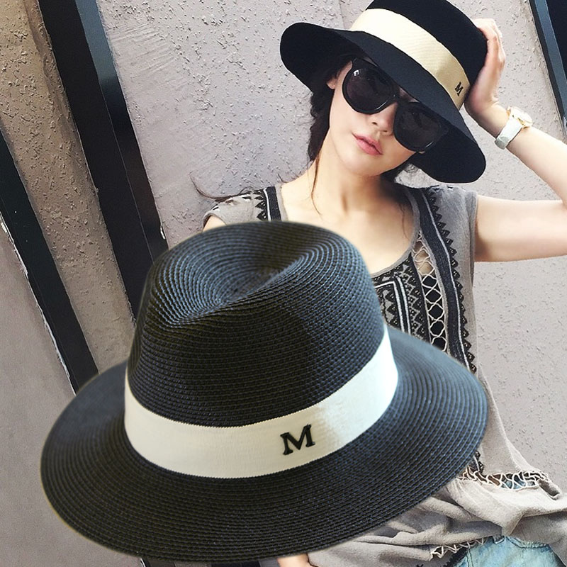 Japan Custom M Mark Summer New Sun Protection Beach Straw Hat Men And Women Jazz Hat Fashion 100 Hitch Sun Hat