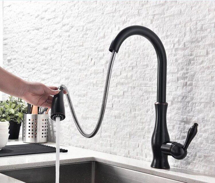 Full copper black gold kitchen rotatable faucet European-style sink wash basin antique copper hot and cold water faucet