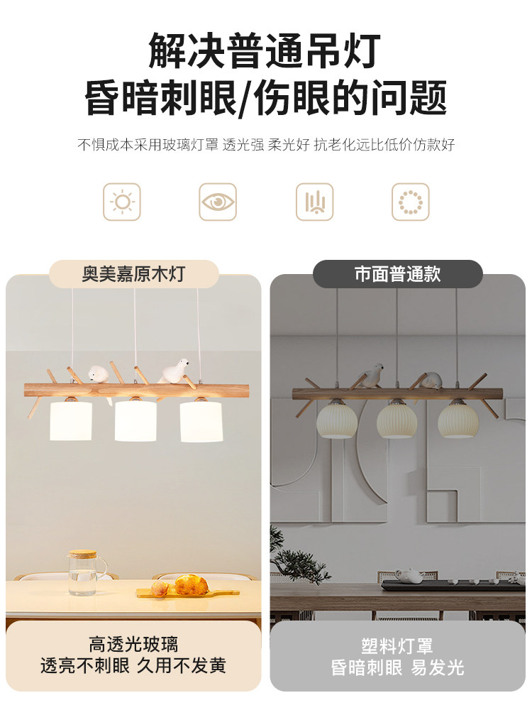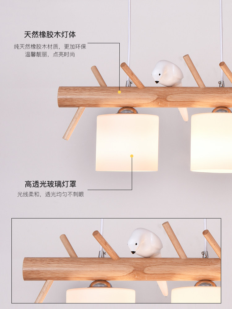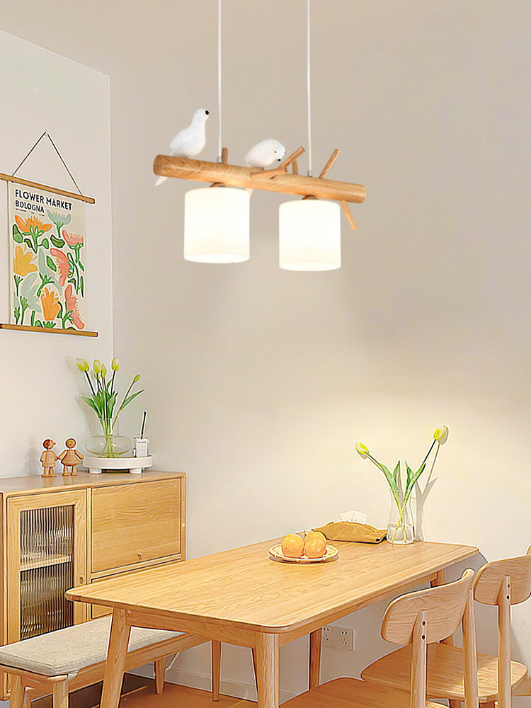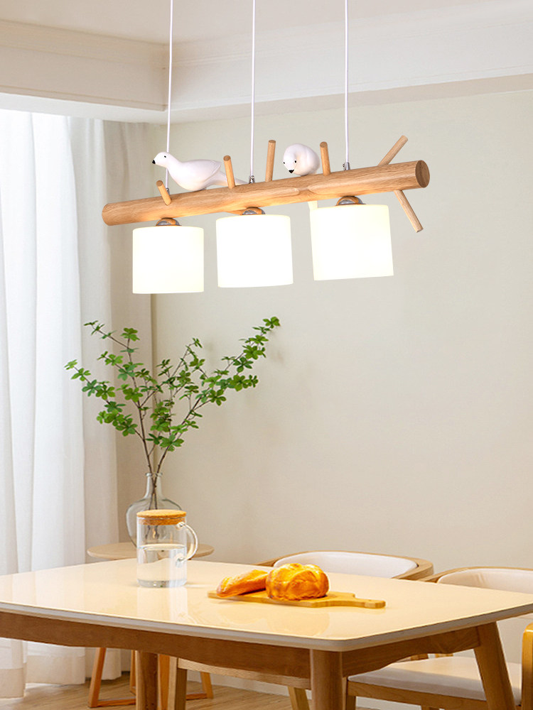 Bird chandelier restaurant lamp three-headed Japanese-style creative personality dining room chandelier modern minimalist solid wood Nordic lamps