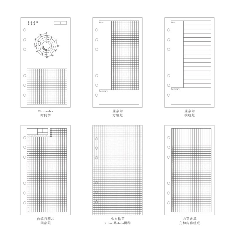 A6 time cake chronodexA6 Cornell horizontal line version A6 Cornell square version A6 square core 2 5mmA6 square core 4mmA6 self-filling schedule core A6 inner page table