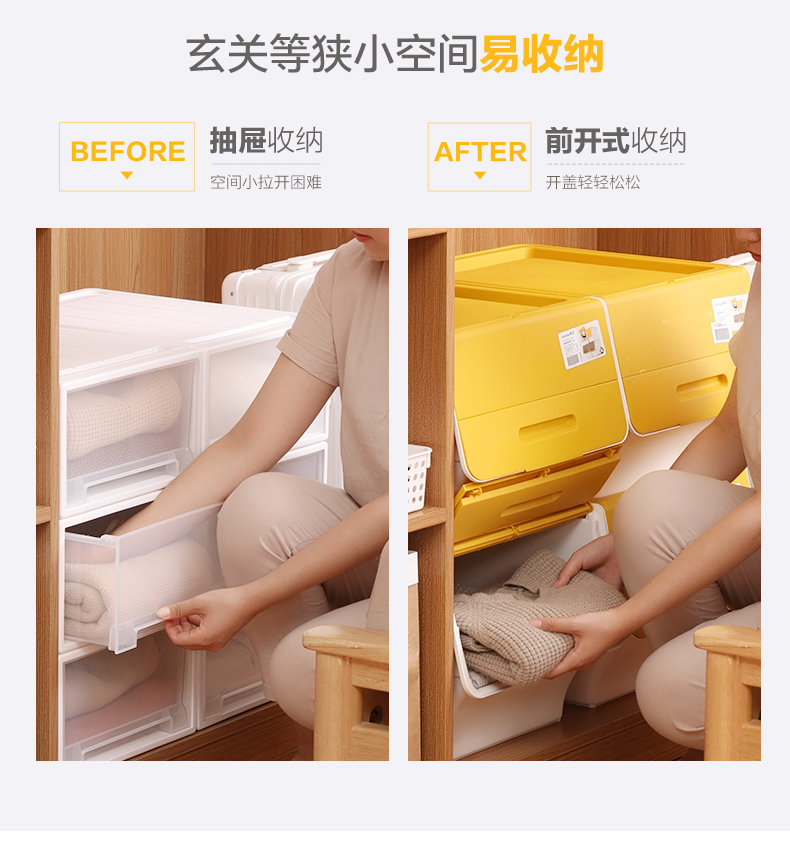 Camellia storage box Front open children's toys and snacks large storage cabinet Clothing wardrobe Bed bottom plastic clamshell box
