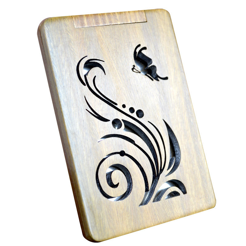 Green sandalwood portable folding hand-held antique small makeup mirror for girlfriend lettering custom birthday gift