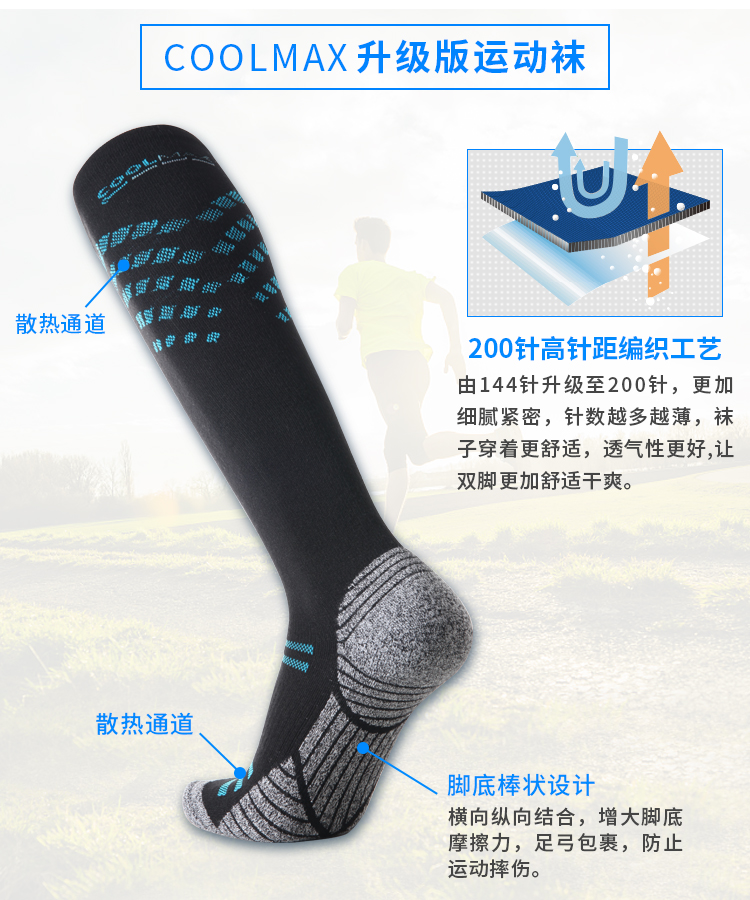 COOLMAX sports socks Wet and dry professional marathon running socks Four seasons terry socks Stockings