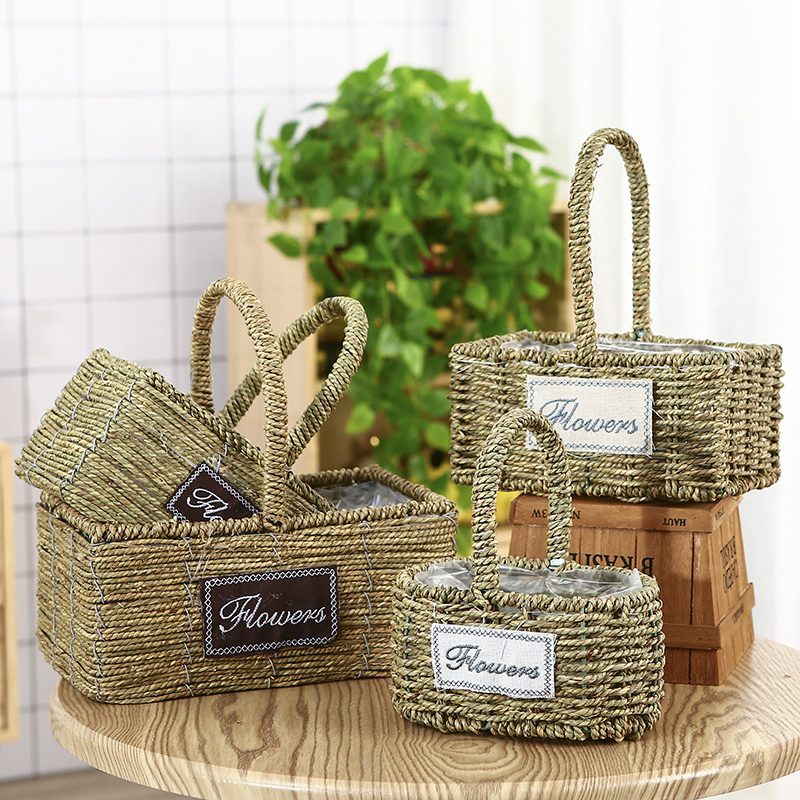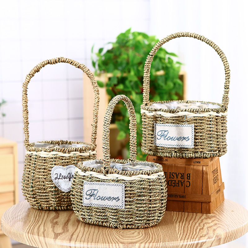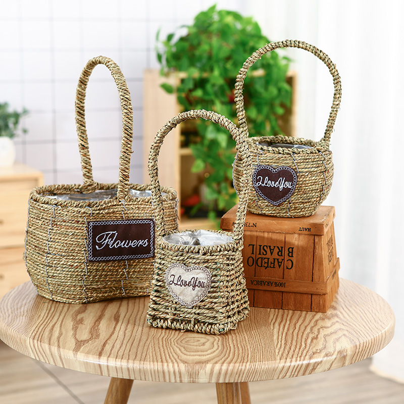 Creative woven straw knitted flower pot vines with flower baskets rattan choreograpes small flower basket vases flower arrangements for the garden of the garden