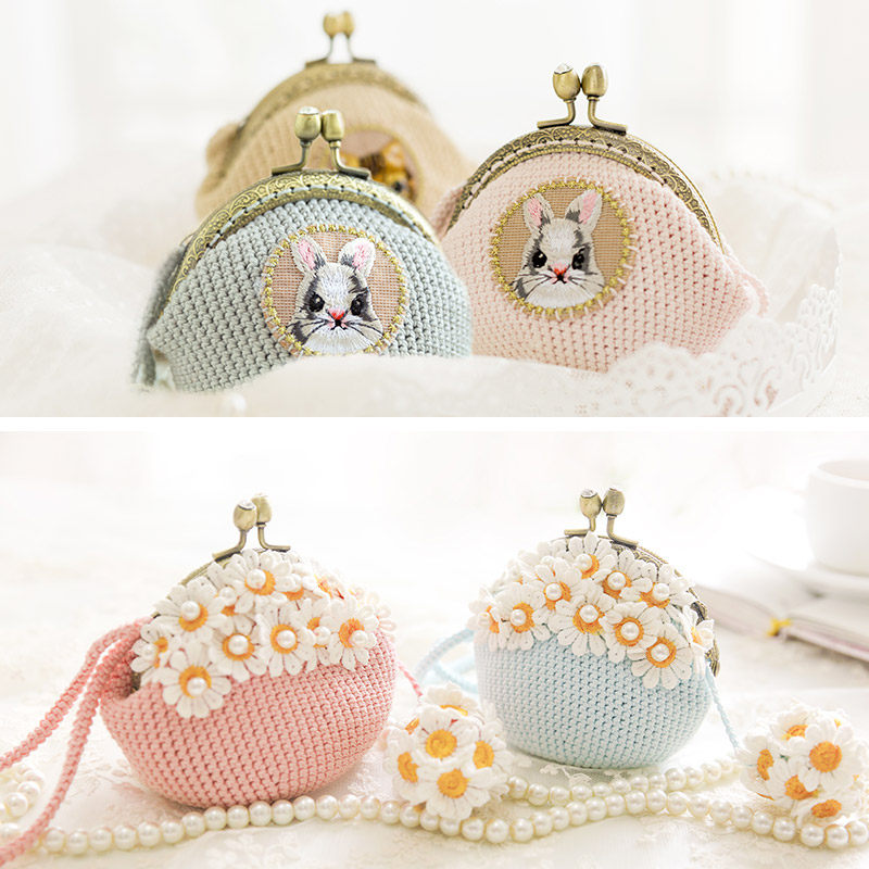 Daisy light green material bag without tools Daisy dark powder material bag without tools Embroidery gouache(rabbit)material bag without tools Embroidery light card(kitten)material without tools Lace Light purple material bag without tools