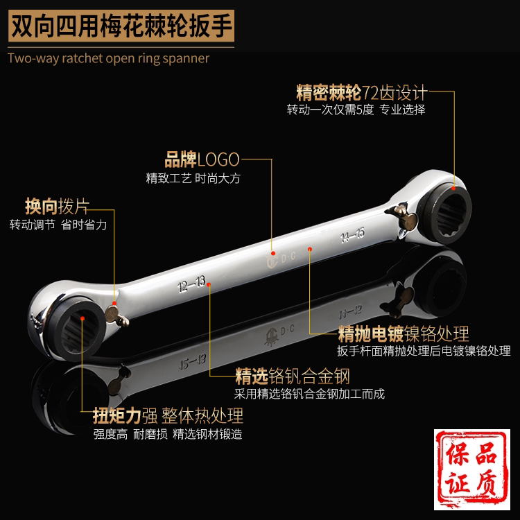 Deer Tool Quick Ratchet Wrench Double Head Four With Ratchet Labor-saving Lengthened Double Plum Blossom Opening Car Warranty Repairs