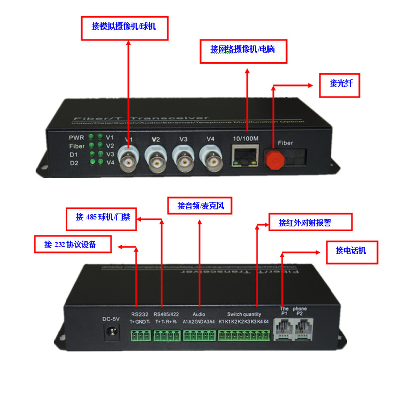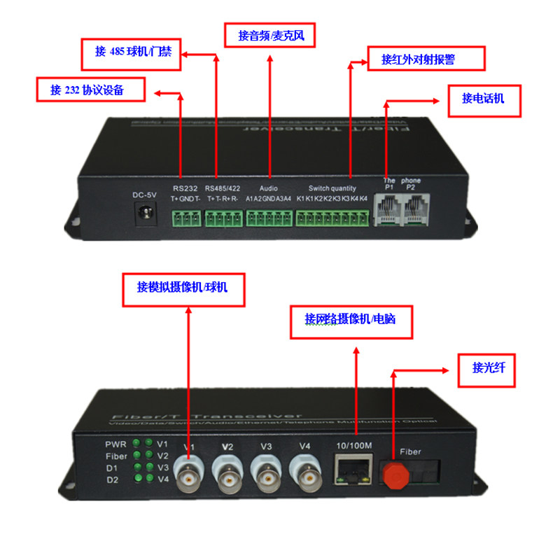 4-way multifunctional business optical transmitter and receiver 2-port analog audio-video transceiver bidirectional phone voice network transfer optical fiber-Taobao