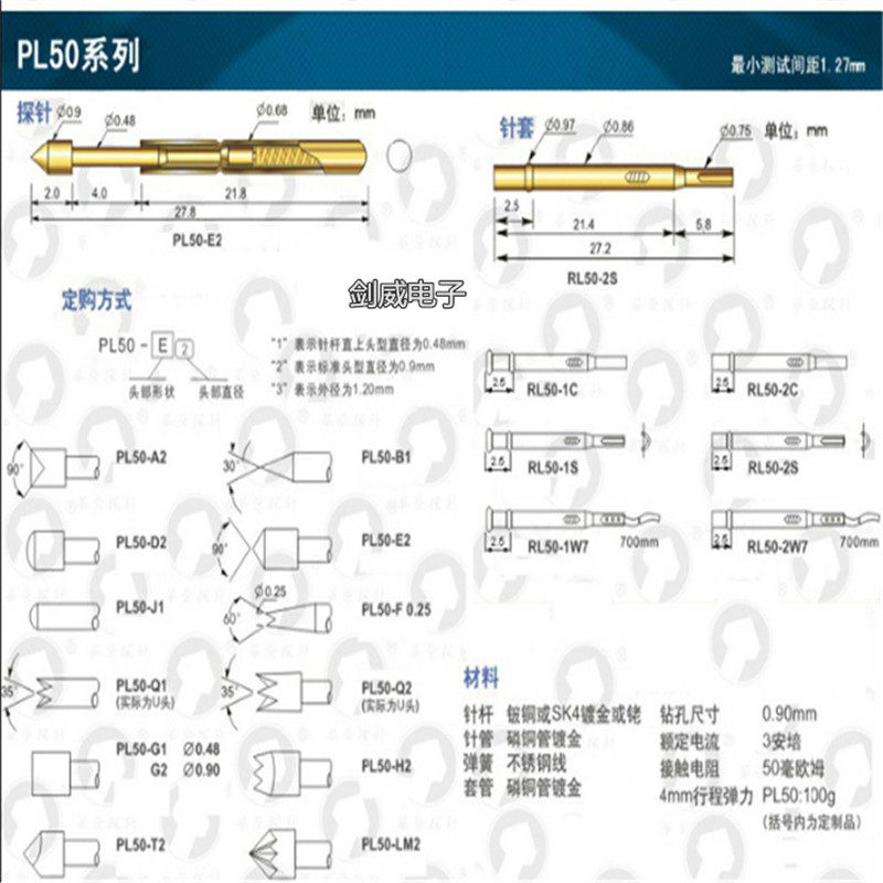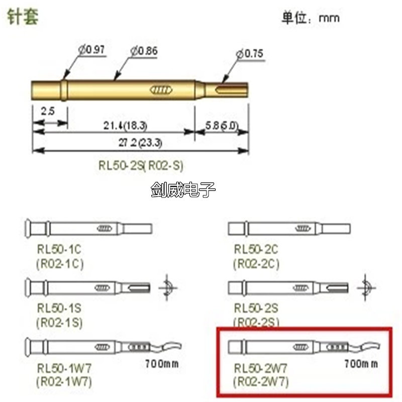 Huarong test probe sleeve RL50-2W7 with wire needle sleeve 0 9 copper sleeve copper gold plated