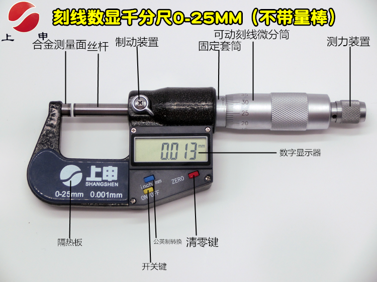 Shanghai Shangshen Jiuquan Digital Micrometer 0-25mm 0 001 Engraved Electronic Outer Diameter Million Card Spiral
