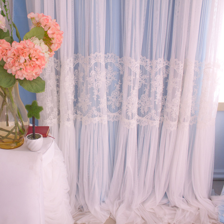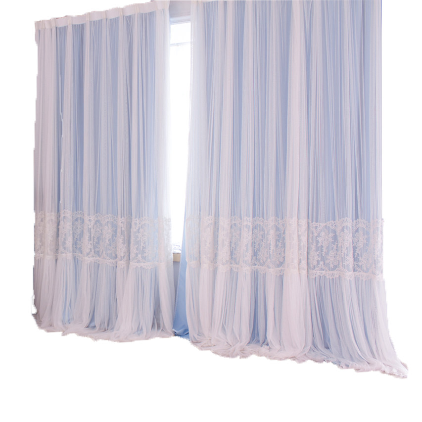 Korean style full shading insulation double layer embroidery lace forest bedroom living room study blue floating window curtain curtain
