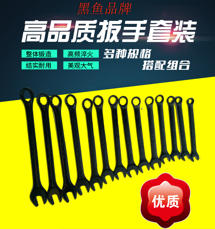 Black Fish 14 Pieces Double-Purpose Wrench Opening Plum Double Wrench Set Wrench-Taobao