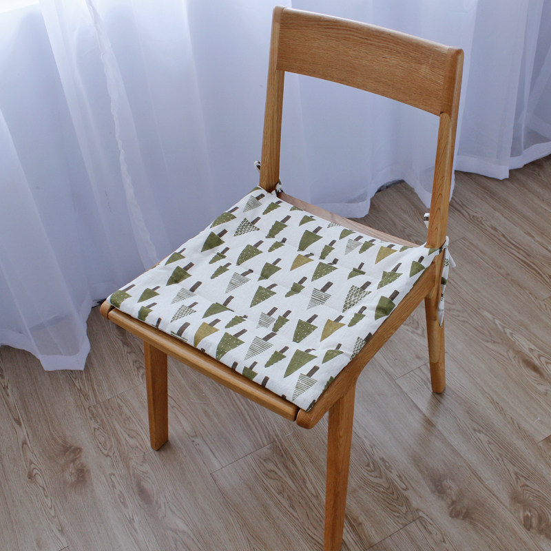 Cotton linen cushion dining chair office chair cushion strap non-slip four seasons pastoral multi-color thin simple fabric