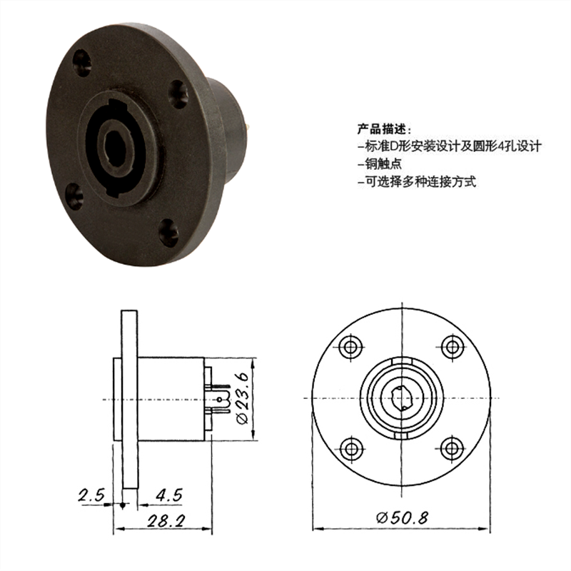 LAIHE-JS four-core speaker sound socket mother seat 4-core sound wire connector power amplifier Carnon head Ohm
